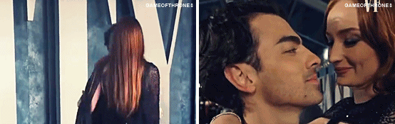→Encore un petit événement avant son tournage : habituée de l'événement, Sophie Turner était à l'after-party de Vanity Fair avec son mari Joe Jonas. Je suis très agréablement surprise : cette robe change de ses dernières sorties, et je trouve qu'elle est tellement sexy avec ses longues jambes dévoilées ainsi, le voilage et les paillettes donnent un côté tellement glamour !